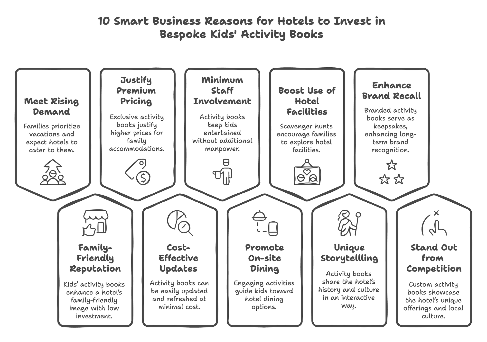 Here are 10 smart business reasons why every hotel manager should consider incorporating a custom kids' activity book into their guest experience: