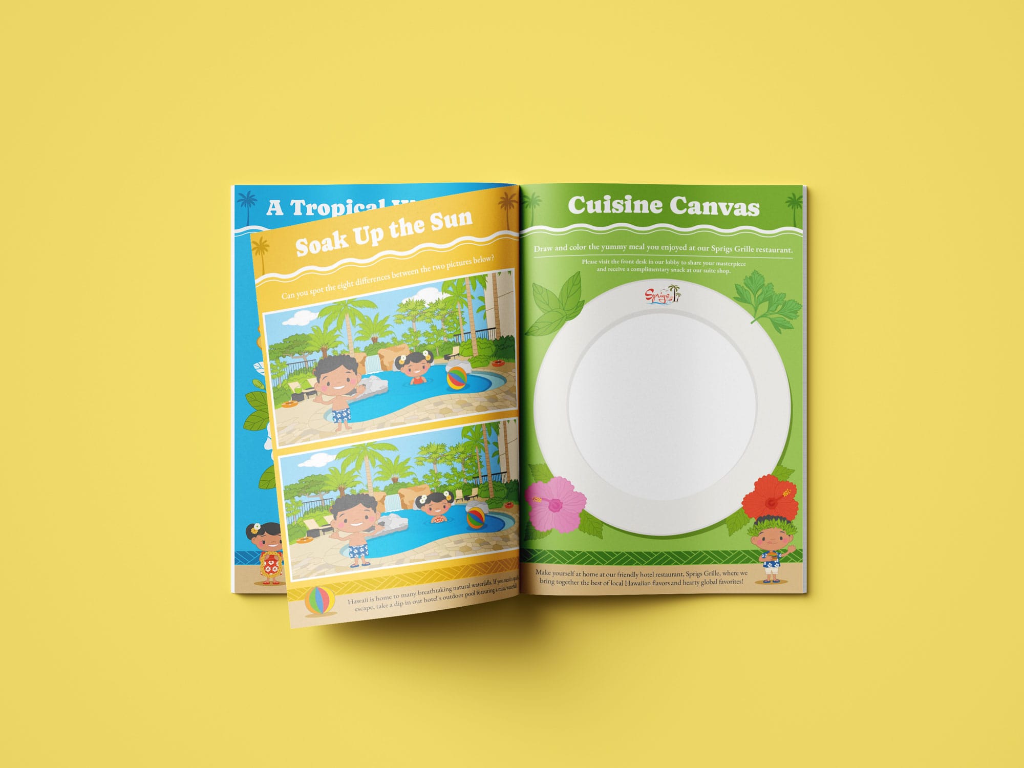 Custom puzzles, games and branded illustrations ensure kids interact with your hotel’s brand story. - Showcase Your Unique Property