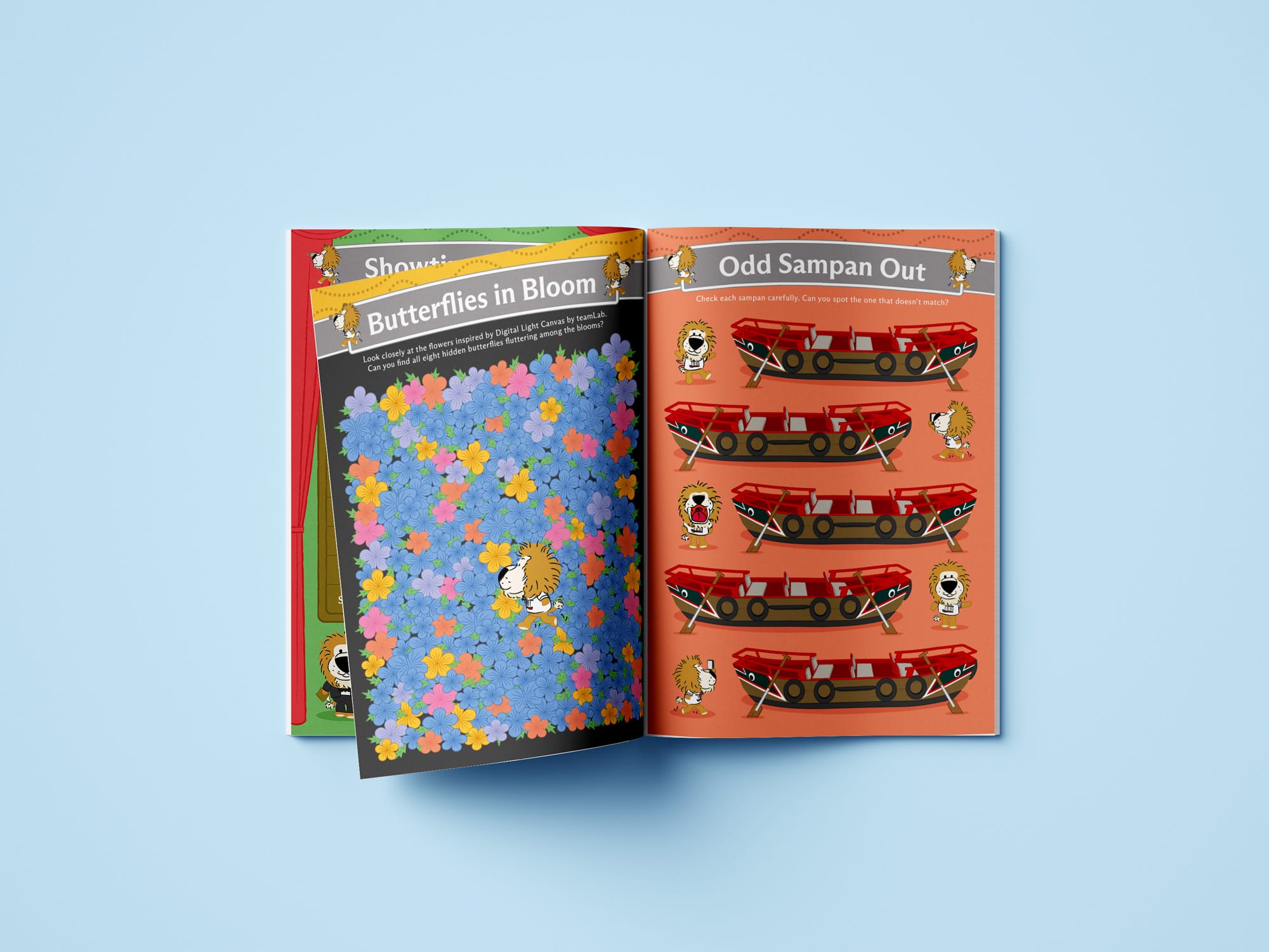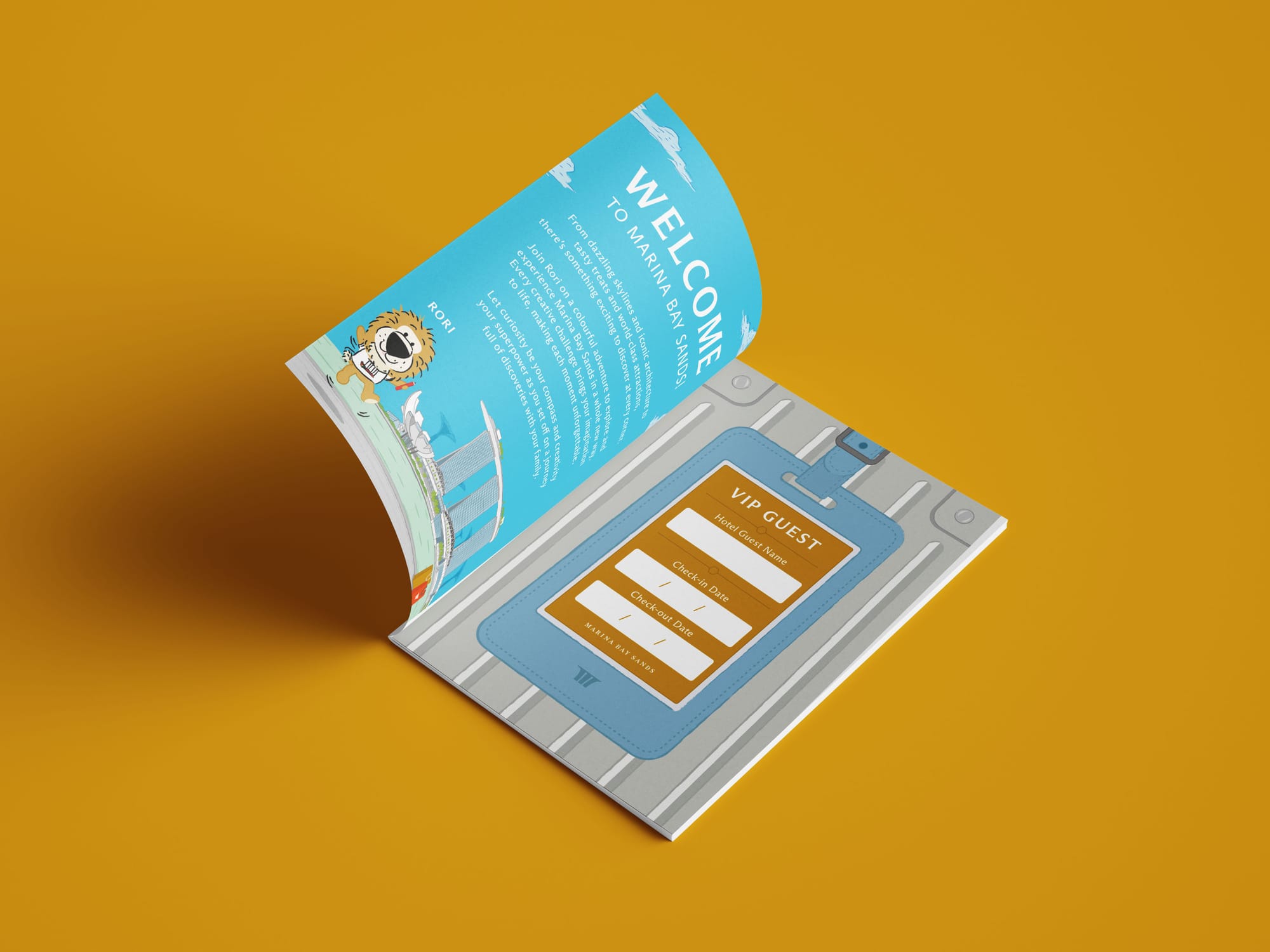 Guided by Rori, the hotel’s mascot and narrative companion, children are taken across the property to discover key on-site experiences. Through considered storytelling, colourful illustration and purposeful activities, the book extends the Marina Bay Sands experience into a refined child-centric storyworld.