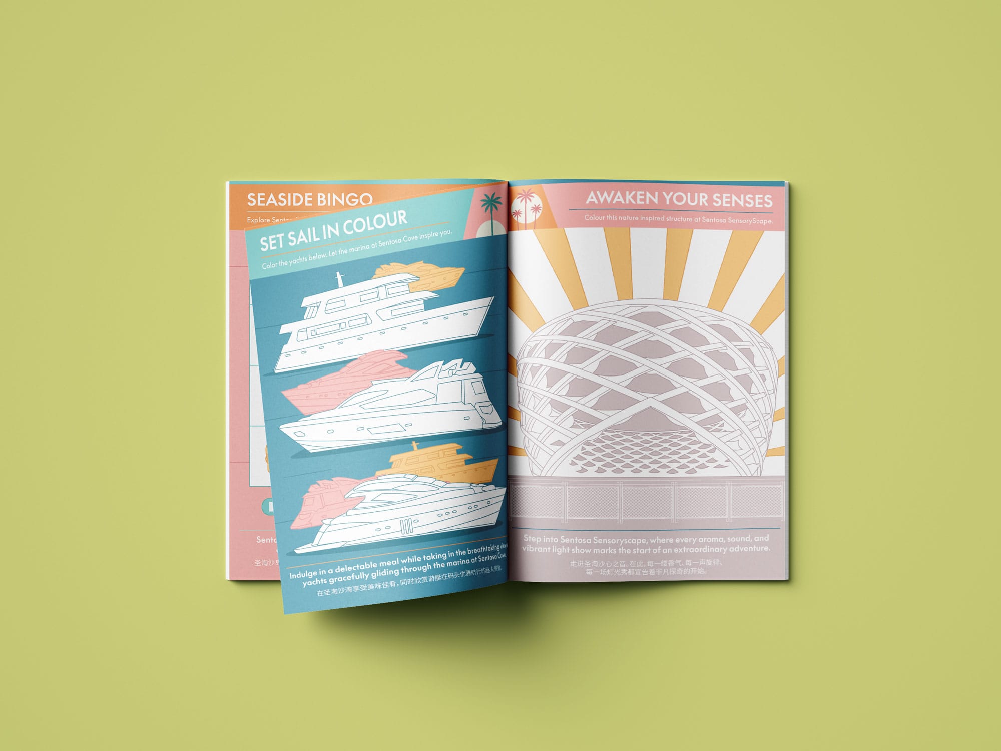 Beyond the hotel's vibrant interiors, Go Play encourages young guests to explore the exciting surroundings of Sentosa Cove and Sentosa Island. Inspired by the sleek yachts docked at the nearby marina, we have created a colouring activity that brings the waterfront to life. Another colouring page features the Sensoryscape, an iconic biophilic-inspired walkway that seamlessly blends nature with art.