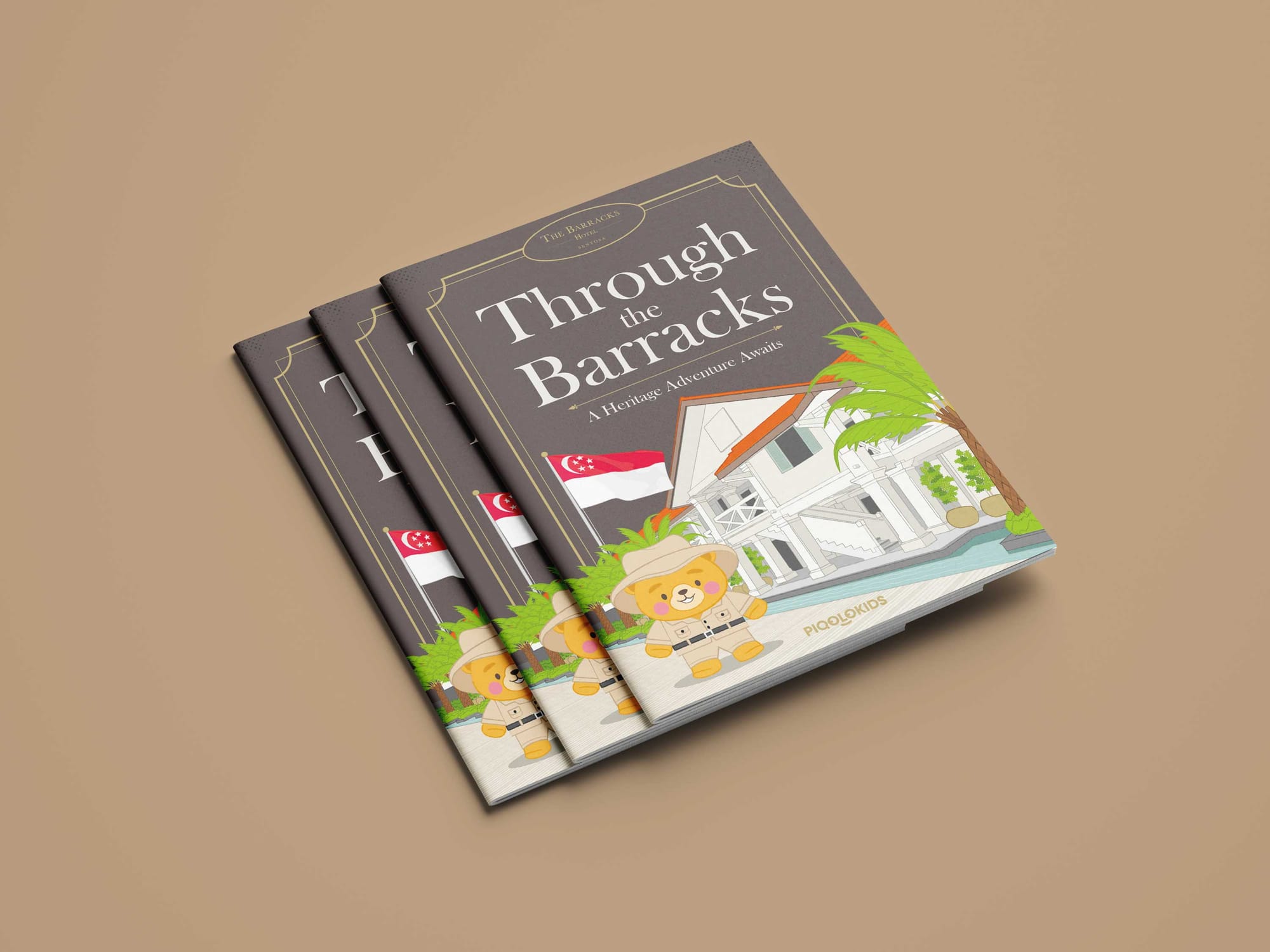 When The Barracks Hotel Sentosa worked with Piqolo Press on a bespoke activity book for young guests, the entire 24-page publication was built around the property's origins as a British artillery barracks. Rather than presenting this as a historical footnote, the book invited children into the story — asking them to imagine life in the mess hall, to follow a hotel mascot named William through the barracks grounds and to discover how Sentosa itself evolved from a quiet fishing island into the destination it is today. The history became the adventure.