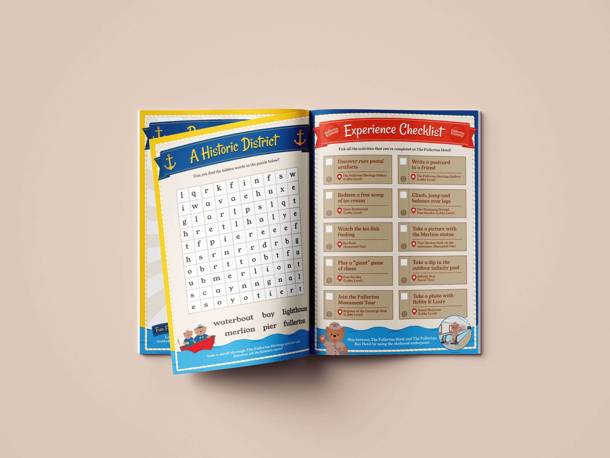For the adjacent Fullerton Bay Hotel, built on the historic site of Clifford Pier, the activity book includes a curated checklist of signature family experiences spanning both properties and the surrounding heritage neighbourhood.