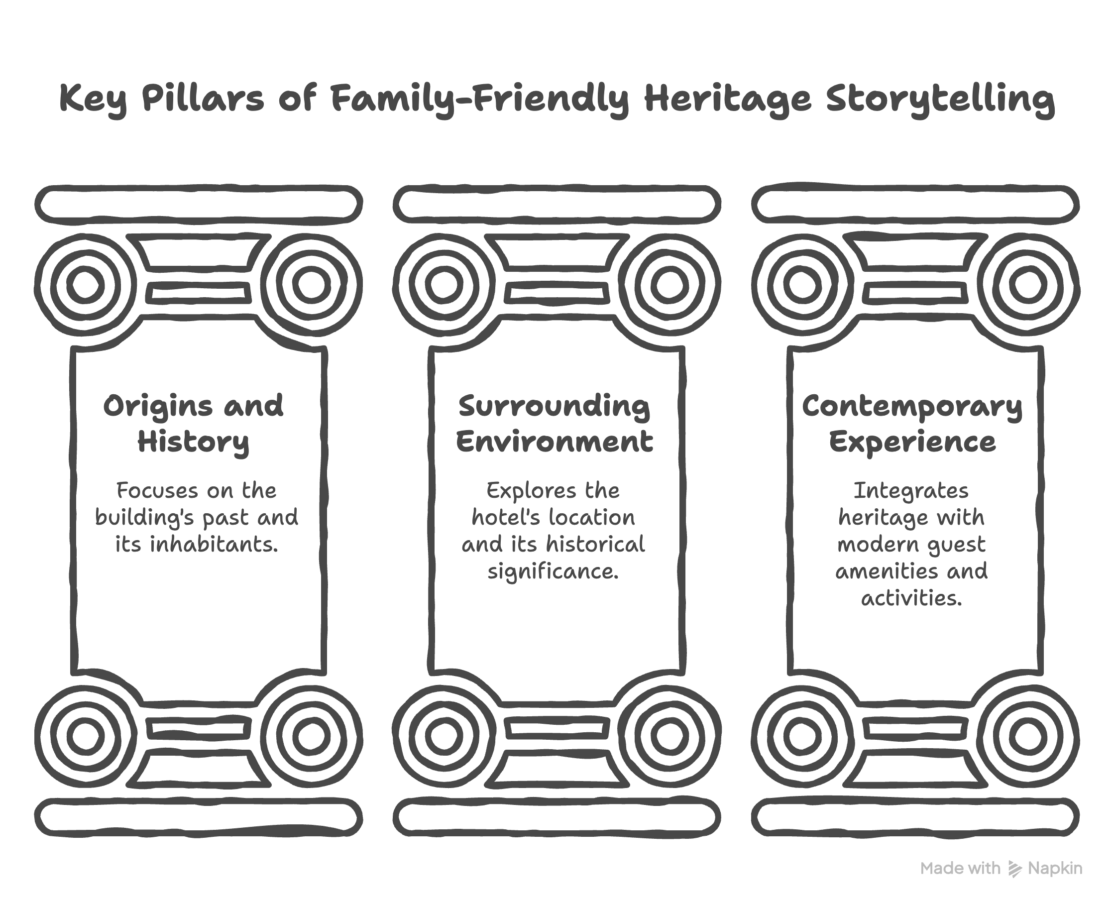 Not every property will commission a bespoke activity book immediately, but every heritage hotel can begin thinking about its story through this lens. From the examples above, three consistent building blocks emerge: