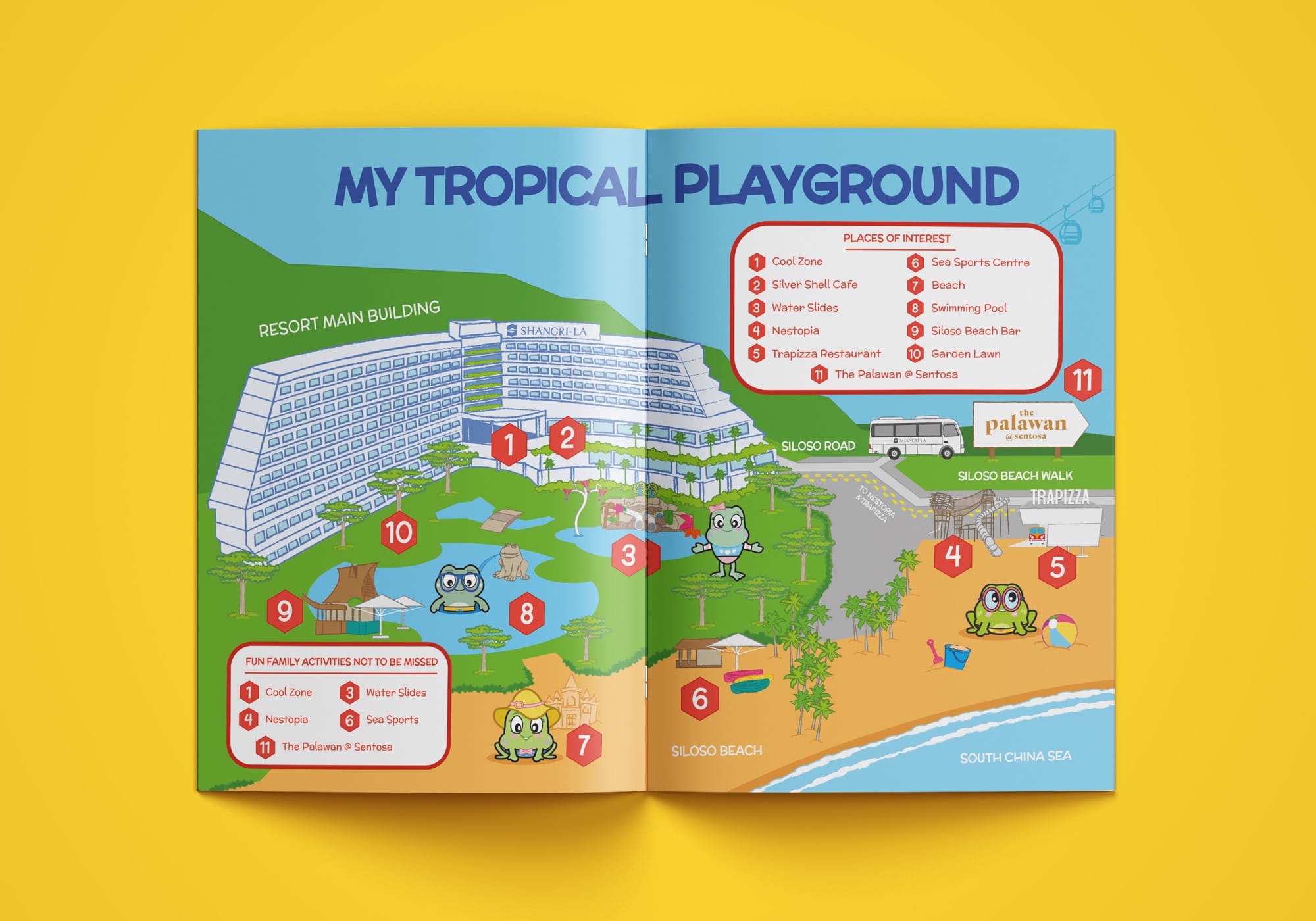 At a sprawling beach resort like Shangri-La Rasa Sentosa, the property itself is big part of the holiday experience. With so much ground to cover, we designed a resort-level map that helps families see the entire resort as one big adventure zone—easy to understand, fun to explore and full of things to look forward to.