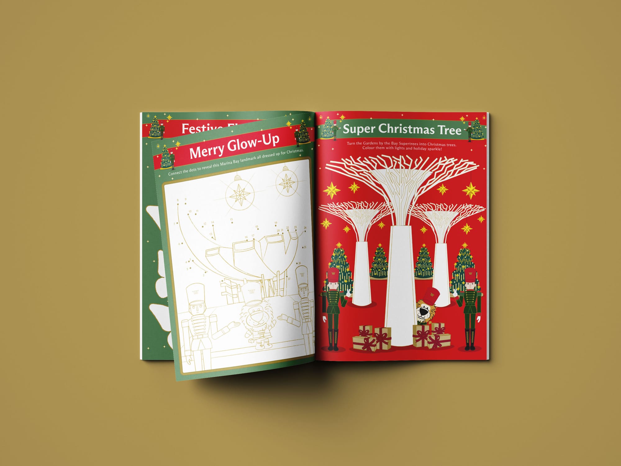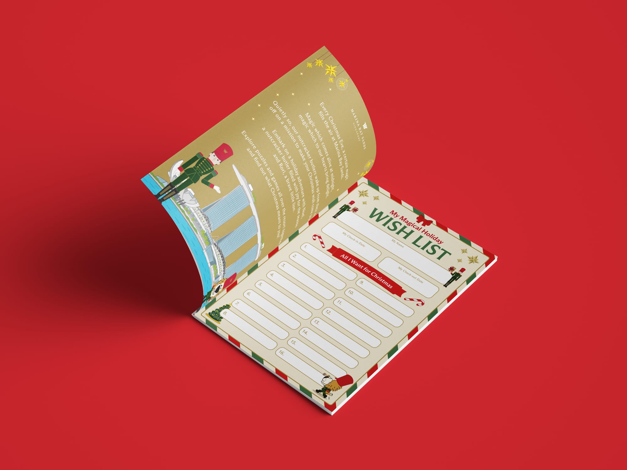 This Christmas, we brought Marina Bay Sands to life with a beautifully bespoke children's activity book starring Noel the Nutcracker Butler and Rori, the hotel’s adventurous lion mascot. Designed exclusively for the festive season, this publication combines the magic of the Nutcracker world with the unique spirit of Marina Bay Sands—highlighting its iconic architecture, vibrant amenities and unmatched location along the Singapore skyline.